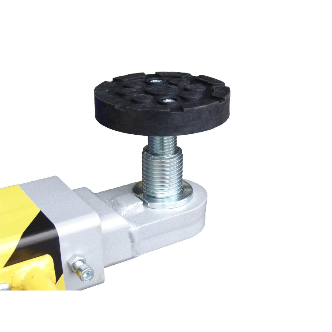 New Improved Low Profile design with less than 4” minimum height and ‘double telescoping’ Screw Pads with 2-3/4” adjustable height! Tuxedo car lift uses “pallet jack” style hydraulics to raise lift onto wheels. Rolls right under vehicle. Lifting capacity of 6,000 lbs