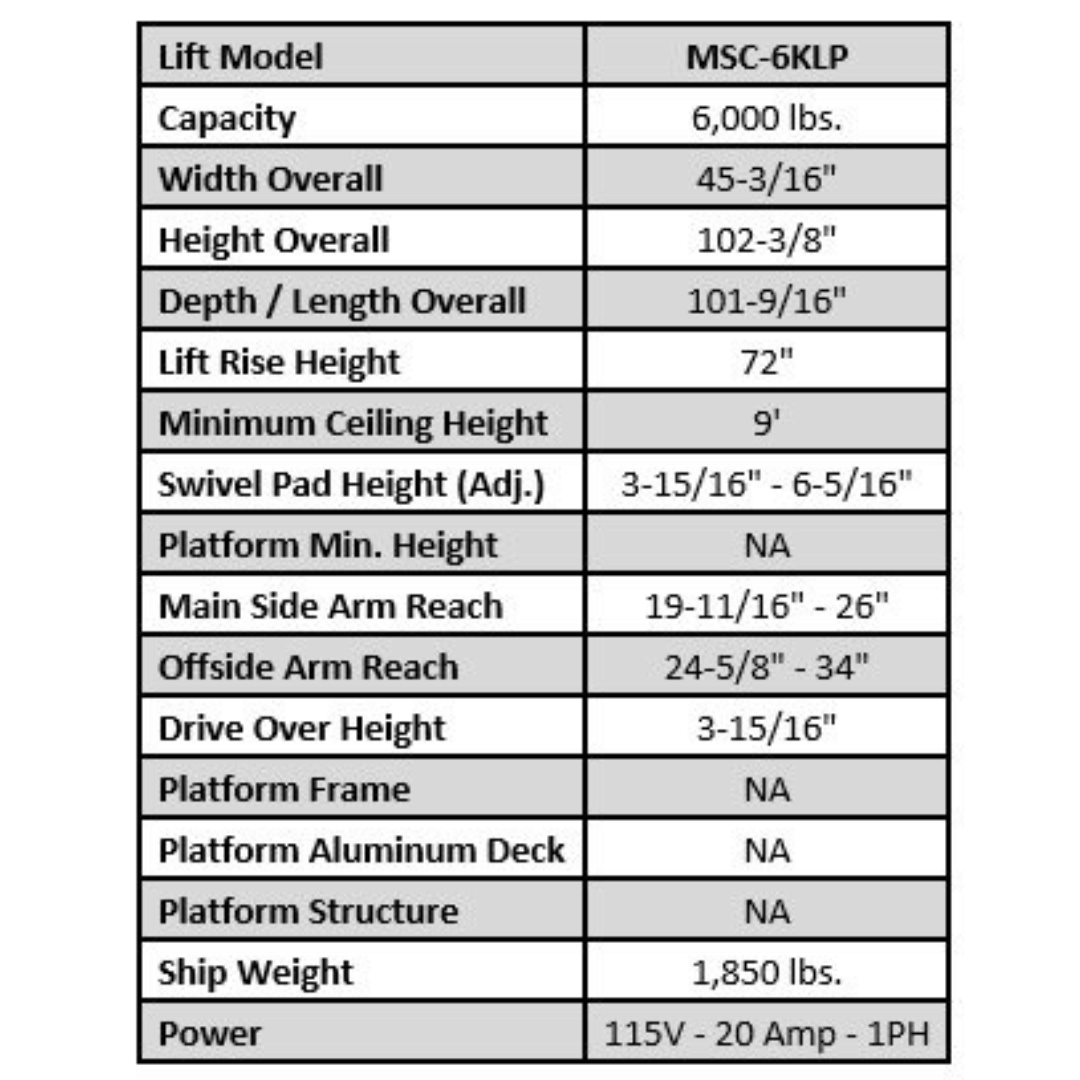 Tuxedo iMobile MSC-6KLP 6,000 lb Low Profile Mobile Single Column Lift